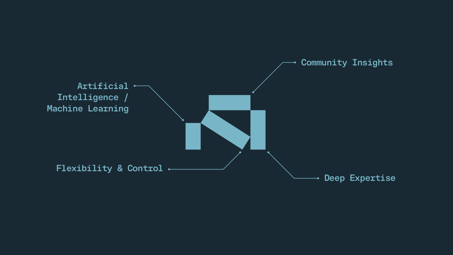 We then brought that strategy to life through a modern visual identity system. The new logo—a bold, abstract “A” formed by four distinct pieces—represents the brand’s four foundational pillars: Artificial Intelligence / Machine Learning, Community Insights, Deep Expertise, and Flexibility & Control. It’s a symbol of unity, adaptability, and forward motion.