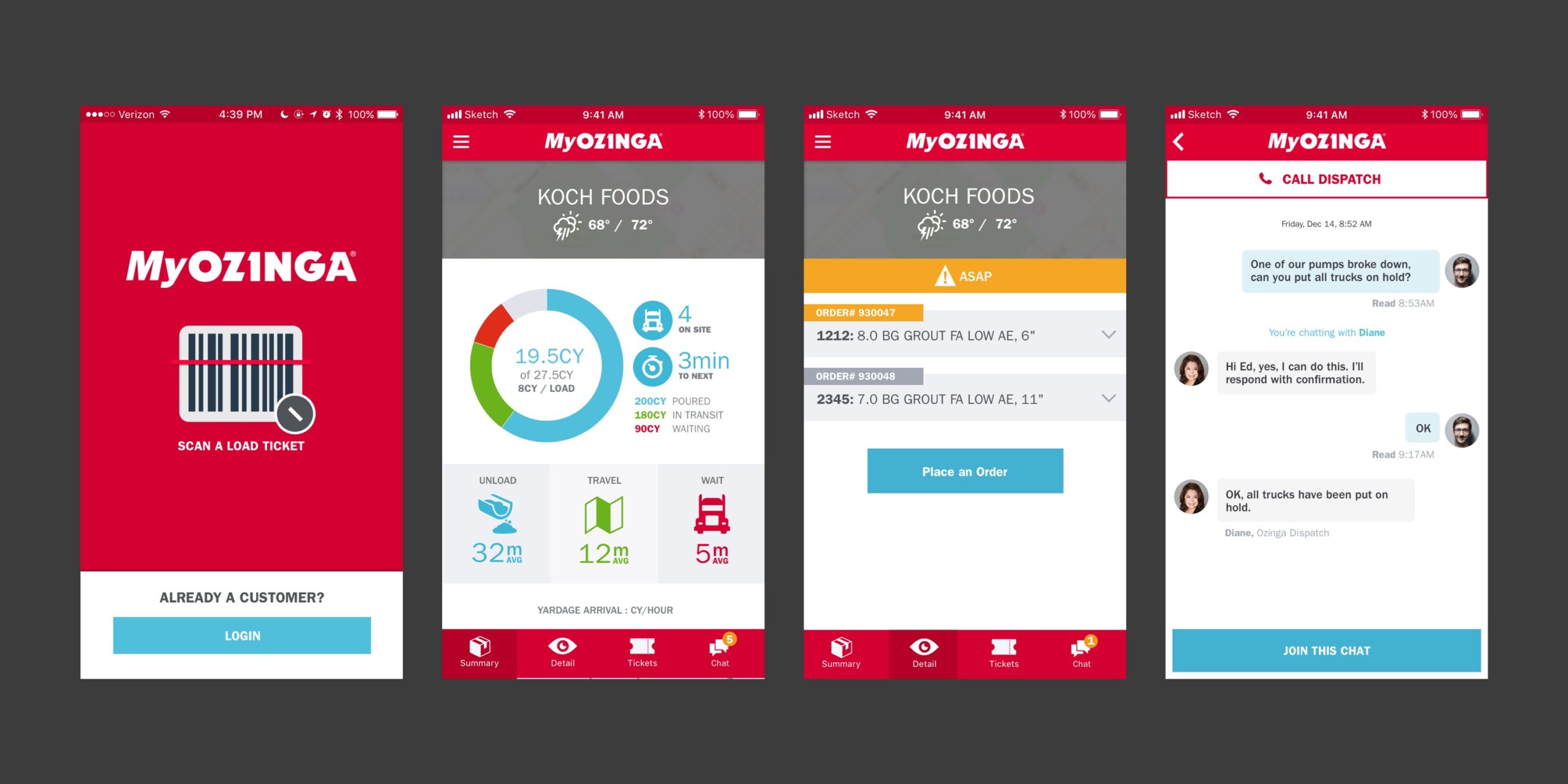 Ozinga customers are now able to place complex orders for concrete; and chat with Ozinga dispatch in real time. We also built a portal for Ozinga’s customer service team that allows them to field and fulfill customer orders and chat with customers.