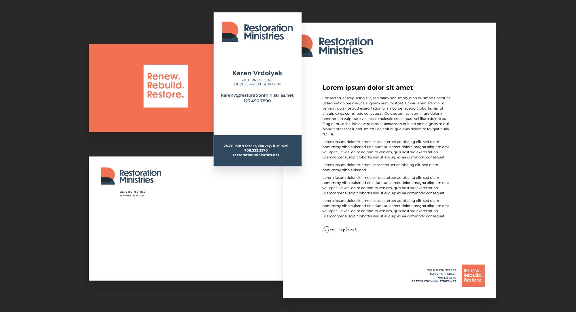 The new visual identity represents that sense of support, warmth, and hope through color, and shapes that are reminiscent of a sunrise and the hope of a new day. Photography featuring members of the Restoration Ministries community captured the heart and soul of the organization, and an informative, inviting website enables people to quickly find the help they need.