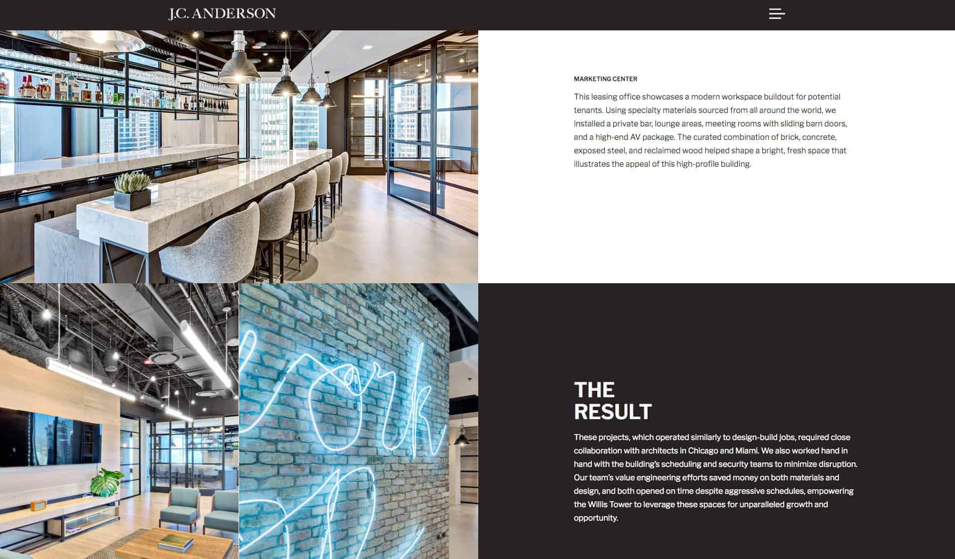 Partnership is something J.C. Anderson, interior construction company to all of Chicagoland since 1879, knows well — and over at Cultivate, we were thrilled to add our name to the list of collaborators. Together we’ve been hard at work to develop a new brand message and visual identity that honors the company’s heritage and drives home its commitment to building modern, thoughtful spaces. Today, we celebrate the launch of their new website, which conveys their belief that interiors matter, and character does, too. They’re J.C. Anderson, and they’re driven by what’s inside.