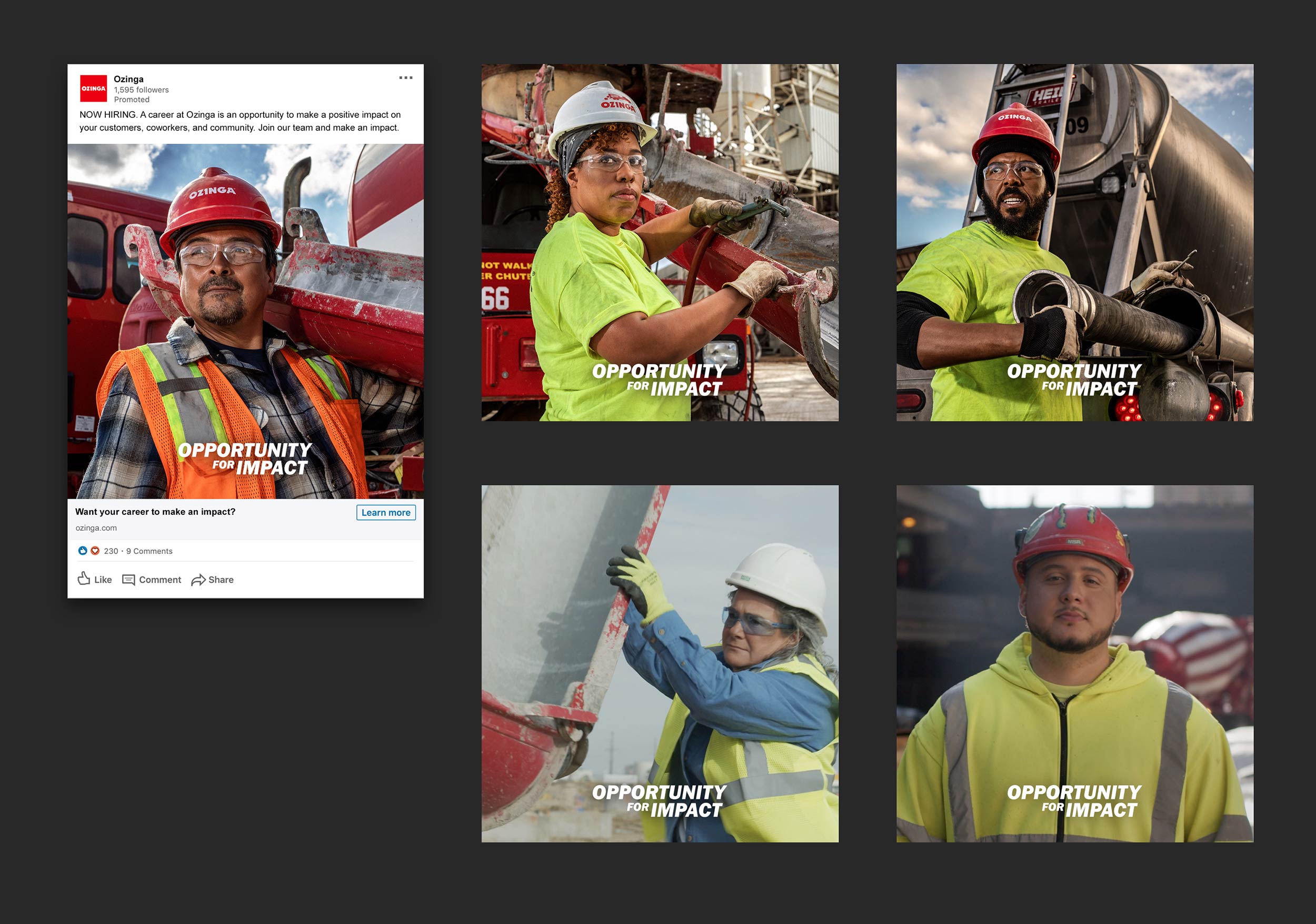 Ozinga has always pushed the boundaries of the construction materials and logistics industry, and it’s their employees that allow them to do it so well. Looking to develop a recruitment campaign targeting drivers hungry for career fulfillment via a company that shares their values, our long-term partners at Ozinga reached out for help creating video + photo work that celebrates those looking for an “Opportunity for impact.”