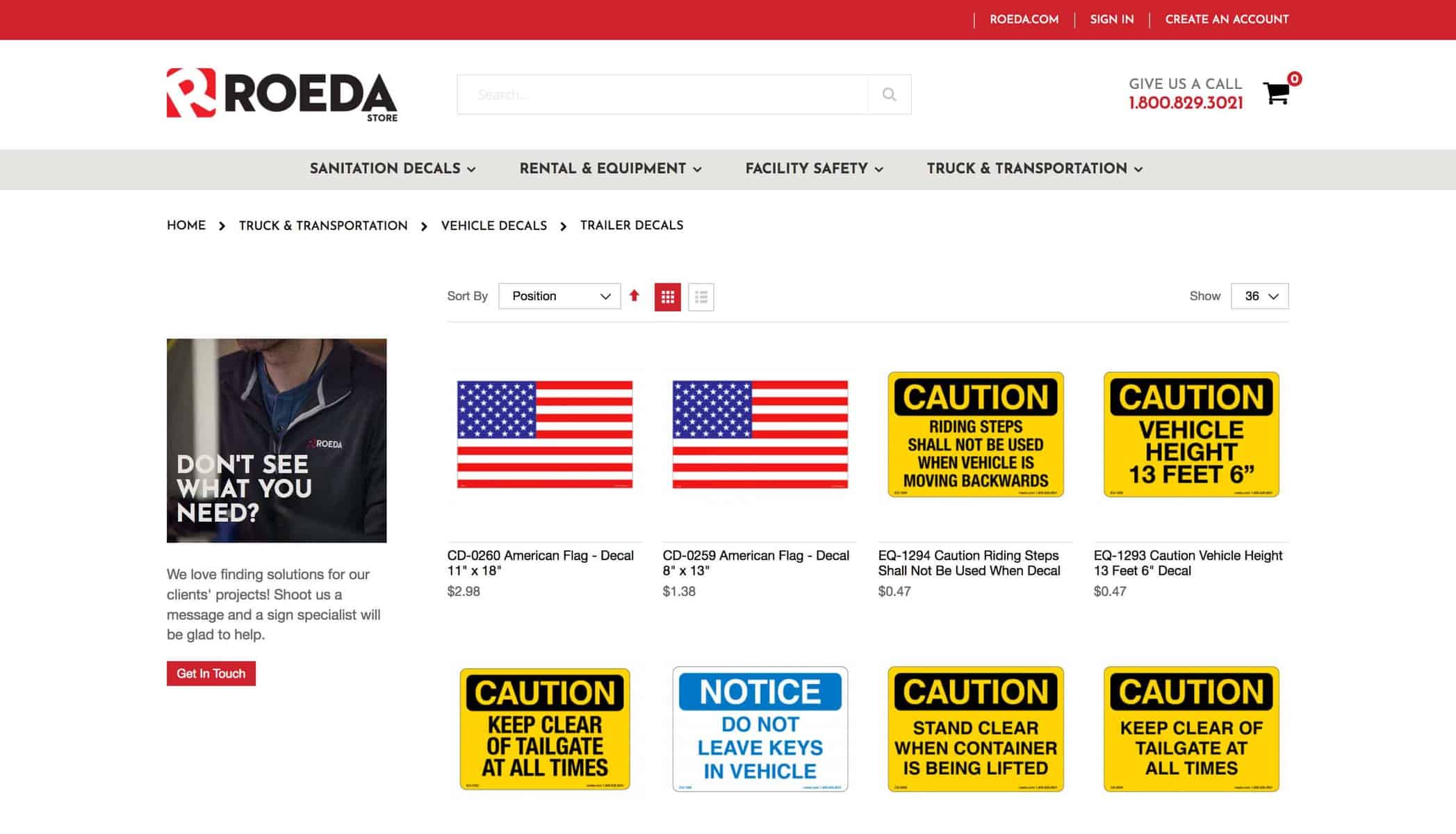 We partnered with Roeda Signs, which has served Chicagoland and NW Indiana for over 60 years as a full-service sign company, to consolidate two online stores into one and introduce a cohesive look and feel for the brand. This merger included complete product reorganization, making the site more user friendly and creating a stronger SEO presence. Combining the two stores also means increased product inventory, resulting in an increase in overall traffic. We utilized this traffic from both stores to make search engines happy by achieving more domain authority for the brand. Along with the merging of the two stores into one, we were able to upgrade the version of the e-commerce platform the store uses, setting the client up for the future in terms of technology, security, and added features.